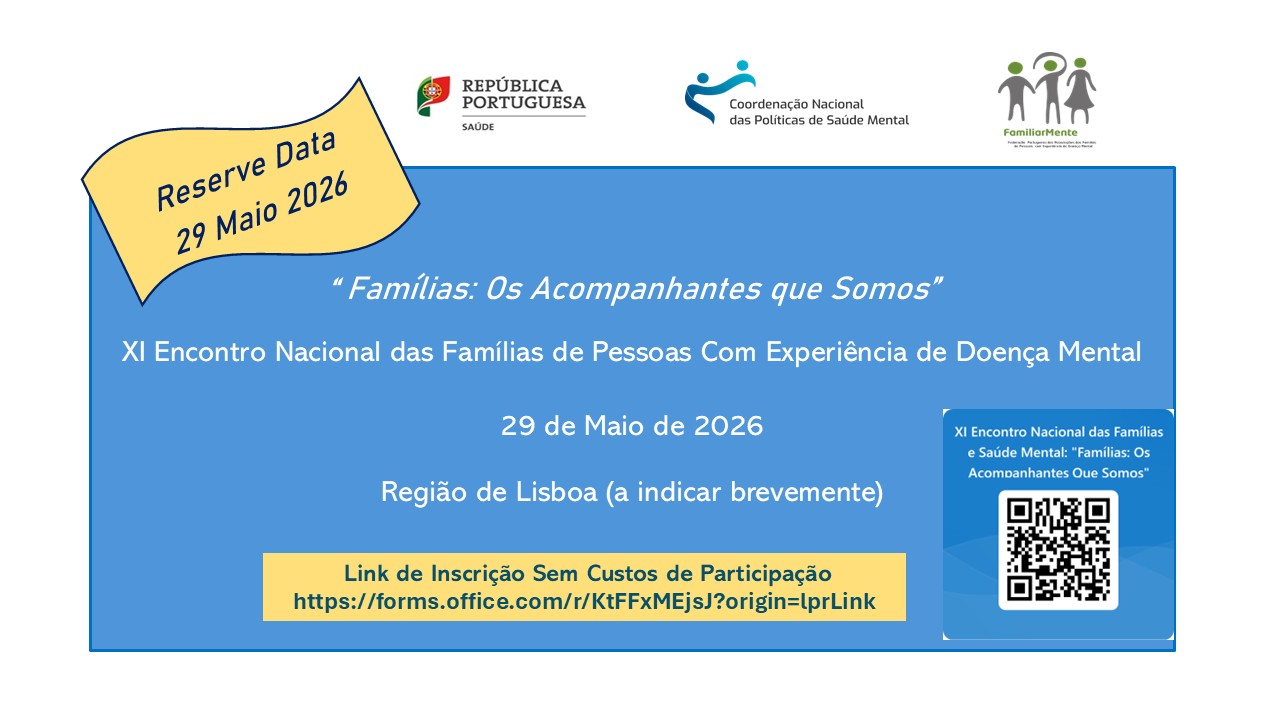 07/04/2026No próximo dia 29 de Maio vai se realizar o XI Encontro Nacional, com organização da FamiliarMente, Federação Portuguesa Associações Famílias Pessoas Com Exp.DM e Coordenação Nacional das Políticas de Saúde Mental. O tema: será “Famílias: Os Acompanhantes que somos”,